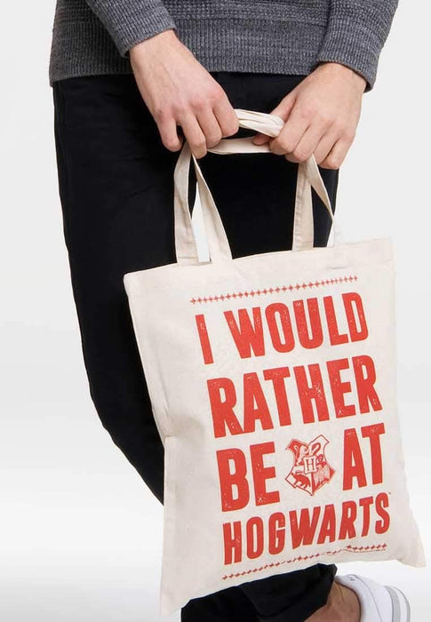 LOGOSHIRT - Harry Potter - I Would Rather Be at Hogwarts - Shopping Bag Eco - Resuable Shopper Bag - Original Licensed Design