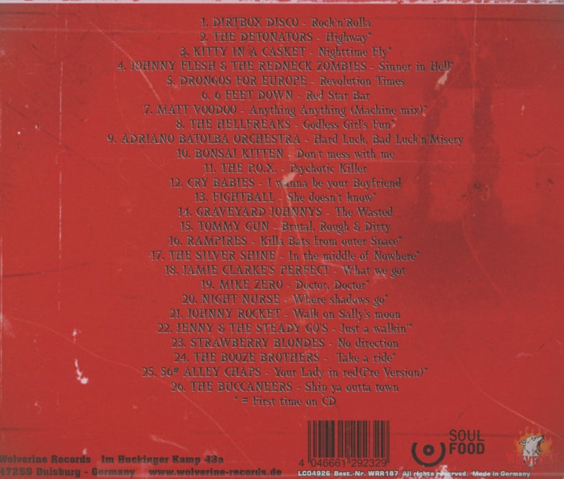 26 tracks featuring The Detonators, Kitty In A Casket, Johnny Flesh & The Redneck Zombies, 6 Feet Down, The Hellfreaks, Bonsai Kitten, The P.O.X., Cry Babies, Graveyard Johnnys, The Rampires, The Silver Shine, Johnny Rocket, 56 Alley Chaps, The Buccaneers and lots more.
