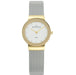 This 22mm Gitte Lille watch features a polished white sandblast dial, at least 50% recycled stainless steel case, two-hand movement and rose gold-tone stainless steel mesh strap. The watch band is not interchangeable.