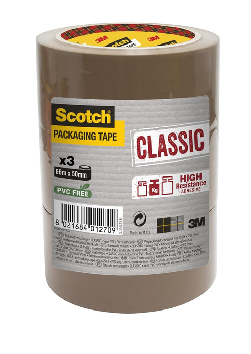 Scotch Packaging Tape Roll - Brown - 50 mm x 66 m Pack of 3
