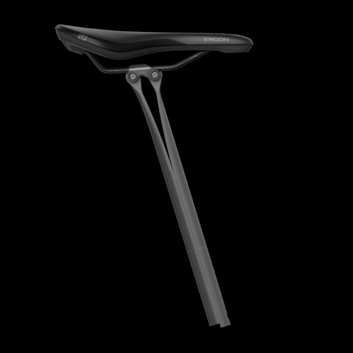 - Unique comfort, lightweight and aesthetically modern: The Ergon leaf spring seatpost revolutionizes comfort on the road bike, all-road and gravel bike. Rough roads and gravel are smoothed out by the two carbon fibre VCLS leaf springs, while the saddle angle remains unchanged by the parallel displacement of the two leaf springs and the floating flip head. The precise and highly sensitive tuned leaf springs work so well that they do not affect the performance of the bike or cyclist.