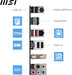 MSI PRO B760-P WIFI DDR4 ATX Motherboard, 4x DDR4 128GB, 5x PCI-E x16, 2x M.2, 4x SATA, 2x USB 3.2 , 4x USB 2.0, 1x USB-C Specifications: CHIPSET INTEL B760 CPU SUPPORT Supports 12th/13th Gen Intel?� Core?�� Processors, Pentium?� Gold and Celeron?� Processors LGA 1700 MEMORY 4x DDR4, Maximum Memory Capacity 128GB Memory Support 5333(OC)/ 5200(OC)/ 5066(OC)/ 5000(OC)/ 4800(OC)/ 4600(OC)/ 4400(OC)/ 4266(OC)/ 4200(OC)/ 4000(OC)/ 3800(OC)/ 3733(OC)/ 3600(OC)/ 3466(OC)/ 3400(OC)/ 3333(OC)/ 3200(JEDEC)/ 2933(JEDEC)/ 2666(JEDEC)/ 2400(JEDEC)/ 2133(JEDEC) ONBOARD GRAPHICS 1x HDMI?�� 1x DisplayPort Support HDMI?�� 2.1, maximum resolution of 4K 60Hz* Support DP 1.4, maximum resolution of 4K 60Hz* EXPANSION SLOT 5x PCI-E x16 slot PCI_E1 PCIe 4.0 supports up to x16 (From CPU) PCI_E2 PCIe 3.0 supports up to x1 (From Chipset) PCI_E3 PCIe 4.0 supports up to x16 (From Chipset) PCI_E4 PCIe 3.0 supports up to x1 (From Chipset) PCI_E5 PCIe 3.0 supports up to x1 (From Chipset) STORAGE 2x M.2 slot M.2_1 (From CPU) supports up to PCIe 4.0 x4 , supports 22110/2280/2260/2242 devices M.2_2 (From Chipset) supports up to PCIe 4.0 x4 / SATA mode, supports 2280/2260/2242 devices 4x SATA 6G port USB 4x USB 2.0 (Rear) 4x USB 2.0 (Front) 2x USB 3.2 Gen1 Type A (Front) 1x USB 3.2 Gen1 Type C (Front) 2x USB 3.2 Gen2 Type A (Rear) 1x USB 3.2 Gen2 Type C (Rear) INTERNAL I/O 1x Power Connector(ATX_PWR) 2x Power Connector(CPU_PWR) 1x CPU Fan 1x Pump Fan 5x System Fan 2x Front Panel (JFP) 1x Chassis Intrusion (JCI) 1x Front Audio (JAUD) 1x Printer Port (JLPT) 1x Com Port (JCOM) 1x TBT connector (JTBT, supports RTD3) 2x Addressable V2 RGB LED connector (JARGB_V2) 1x RGB LED connector(JRGB) 1x TPM pin header(Support TPM 2.0) 4x USB 2.0 2x USB 3.2 Gen1 Type A 1x USB 3.2 Gen1 Type C OPERATING SYSTEM Support for Windows?� 11 64-bit, Windows?� 10 64-bit PCB DIMENSION ATX 243.84mmx304.8mm