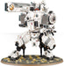 An absolute colossus of a machine, piloted by graduates of the Ves'oni'Vash, the KV128 Stormsurge is designed as an extreme heavy-weapons platform. Not as manoeuvrable as a Riptide, instead relying on thick armour and devastating loadouts, these hulking, squat ballistic suits are capable of changing the course of a battle in seconds with a decisive volley of astonishing firepower. Fitted with thrusters to counter recoil, bristling with pulse weaponry and missile pods, the Stormsurge is the T'au Empire's Titan-killer. The Stormsurge comes with a truly amazing amount of offensive firepower - two missile pod assemblies, a pulse driver cannon, a pulse ARC cannon, two ballistic burst cannons, two airbust frag projectors and twin-linked flamers! This multi-part plastic kit contains all the components necessary to build one KV128 Stormsurge, ballistic suit of the T'au Empire. It includes an astonishing 171 components - four head options, two pilot assemblies, a reactor suite, two leg assemblies and two sets of stabilising thrusters! Various vents and assemblies can be modelled optionally closed or open, and the whole miniature has incredible posability. Includes one Citadel 170mm Oval base.