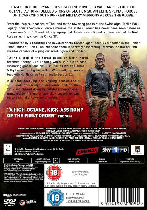 Based on Chris Ryan’s best-selling novel, STRIKE BACK is the high octane, action-fuelled story of Section 20, an elite special forces unit carrying out high-risk military missions across the globe. From the tropical beaches of Thailand to the towering peaks of the Swiss Alps, Strike Back: Legacy thrusts Section 20 onto a mission the scale of which has never been seen before as this season Scott & Stonebridge go up against the state sanctioned criminal wing of the North Korean regime, known as Office 39.