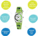 One of our most popular time teachers, this style features an easy read dial with markings specially designed to help kids tell the time with confidence. The strap is made from soft canvas with 3D dinosaur detail and a self-fastening hook and loop closure which is easy for little ones to take on and off themselves. The dinky 25mm case makes this the perfect for younger children. Presented in a super cool giftbox, which includes a sheet of exclusive Tikkers stickers! All Tikkers watches have a one year guarantee.