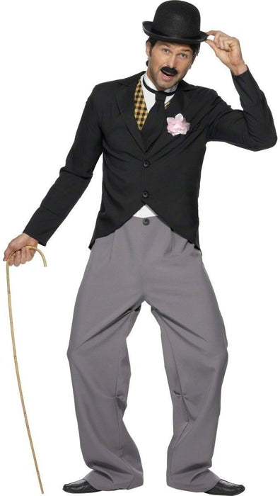 You already spend your days walking into trees and then tipping your hat to them. Now, you can put that rare talent to use by becoming a real 1920's silent movie star. Well, you COULD become a 1920's actor in this Fancy Dress Costume, but you may be just a few decades too late. It's a good thing that slamming face first into a tree has a pretty long comedic shelf life. - Jacket - Bib Pants w/ Mock Waistcoat/ Dickey & Tie - Pink Fabric Carnation Boutonniere