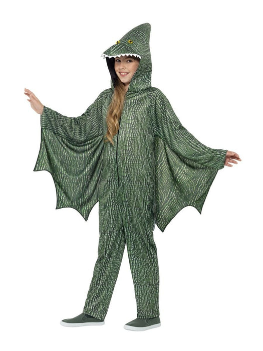 Smiffys Pterodactyl Dinosaur Costume, Green with Hooded Jumpsuit & Attached Wings, Children's Animal Fancy Dress, Animal Dress Up Costumes