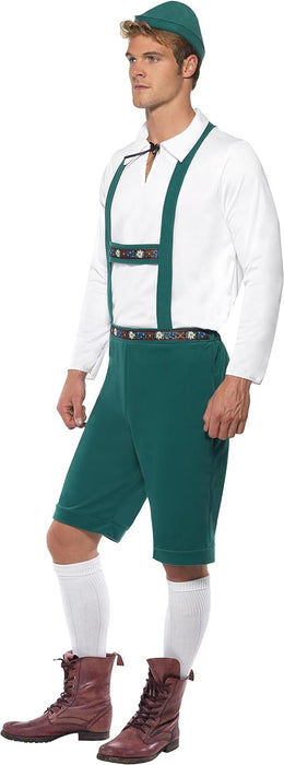 Smiffys Beer Fest Costume, Green Lederhosen Shorts with Braces, Top and Hat, Oktoberfest Fancy Dress, Adult Dress Up Costumes