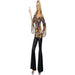 - Includes Hippie Costume, Female, Black, with Patterned Top and Flared Trousers