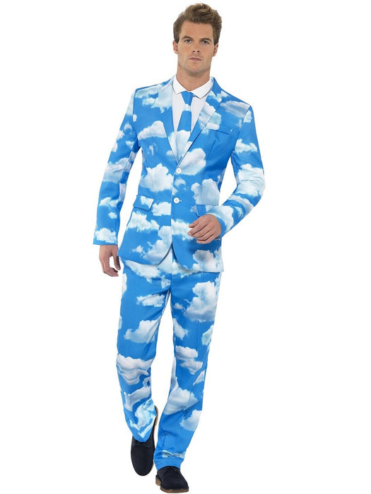 Smiffys Sky High Suit, Blue with Jacket, Trousers and Tie, Stand Out Suits Fancy Dress, Comedy Dress Up Costumes