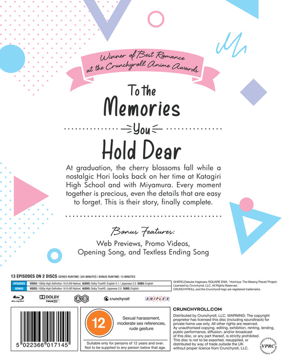 At graduation, the cherry blossoms fall while a nostalgic Hori looks back on her time at Katagiri High School and with Miyamura. Every moment together is precious, even the details that are easy to forget. This is their story, finally complete.