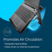 - Accommodating 12-17” laptops, padded non-slip inserts keep your device firmly in place, whilst dissipating heat build up to keep the laptop cooler, easing strain on the battery and internal components