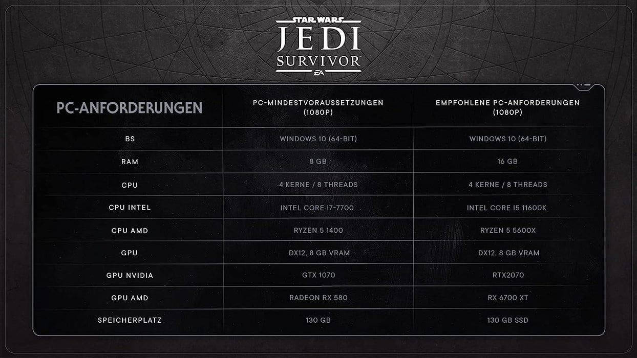 STAR WARS Jedi: Survivor PC-Mindestvoraussetzungen