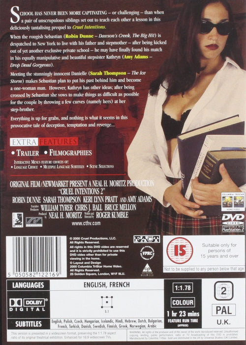 Prequel to the hit 1999 teen-drama 'Cruel Intentions'. Sebastian (Robin Dunne) has been kicked out of yet another private school and is sent home to live with his father and stepmother in New York. Here he meets his beautiful and manipulative step-sister Kathryn (Amy Adams), who will do anything to make his life a misery, especially since he has fallen for the innocent Danielle (Sarah Thompson). Kathryn tries everything to seduce Sebastian, even when his new girlfriend is around. This temptation causes many problems for Sebastion, whose past track record in relationships has not been the most honest.
