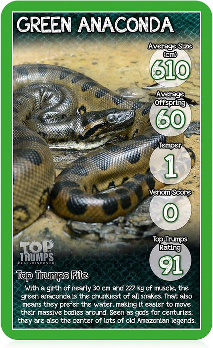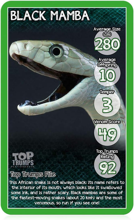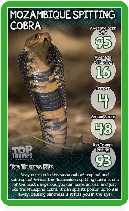 Top Trumps Snakes Classics Card Game, learn interesting facts about the King Cobra, Death Adder and the Grass Snake in this educational packed game, 2 plus players makes a great gift for ages 6 plus