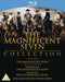 All four 'Magnificent Seven' films. The series begins with 'The Magnificent Seven' (1960). A small Mexican village, terrorised by the cutthroat Calvera (Eli Wallach) and his bandits, hire a team of seven mercenaries to expel the vile interloper. The seven are led by Chris (Yul Brynner), and they set about the job of training the terrified townfolk in the art of killing before meting out their own brand of justice. Director John Sturges' re-make of Akira Kurosawa's 'The Seven Samurai' cemented star-like qualities on most of its cast, including James Coburn, Steve McQueen, Charles Bronson and Robert Vaughn. The first sequel, 'The Return of the Magnificent Seven' (1966), only has Yul Brunner from the original all-star cast. Chris Adams (Brynner) is sent for to help a Mexican village get rid of a tyrannical rancher (Emilio Fernandez) who is bullying the villagers into building a church as a memorial for his son. Adams rounds up the usual suspects (another six to make up the magic number) from prison and other places of ill-repute and the new Seven head for the Mexican border. 'Guns of the Magnificent Seven' (1969) sees George Kennedy take over the Yul Brynner role of Chris Adams, the only surviving member of the original Seven. Adams puts together another six bandits in order to help a group of Mexican rebels free their leader from a prison run by the ruthless Colonel Diego (Michael Ansara). Diego will go to any lengths to prevent the rebel leader from being freed but the Seven are also just as determined. Finally 'The Magnificent Seven Ride!' (1972) is set when the various heroes are all either too old to fight or languishing in jail. Chris Adams is newly married and trying to settle down with his wife but decides to help his buddy fight bandits after they kidnap his wife.