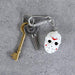 Get ready for the fright of your life with these terrifyingly accurate scary movie keychains. Featuring the mask of the killer Jason Voorhees from the movie Friday The 13th, this keychain is made of a heavy metal for durability - perfect for bags, zippers or your set of keys.