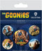 Official UK Licensed Product. Warning: not suitable children under 3 years due to small parts and functional sharp points. Set of button badges from the hugely popular The Goonies range. Badges feature classic images and quotes from the classic film including the original movie poster and 'Hey You Guys'. Set: One badge measures 38mm diameter and four badges measure 25mm diameter. Badges fasten with a safety pin fixing. Presented on a genuine branded card. A fab gift idea for any The Goonies fanatic or add to your own collection.