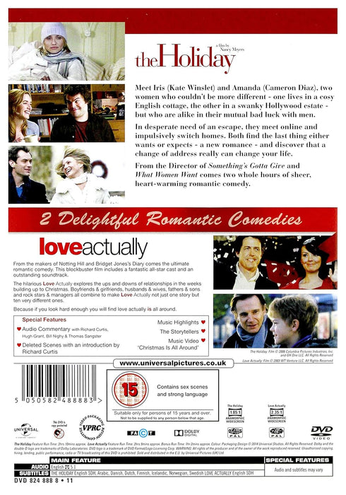 Double bill of romantic comedies. In 'The Holiday' (2006), Iris (Kate Winslet) is in love with a man who is about to marry another woman. Across the globe, Amanda (Cameron Diaz) realises the man she lives with has been unfaithful. Two women who have never met and live 6000 miles apart, find themselves in the exact same place. They meet online at a home exchange website and impulsively switch homes for the holiday. Iris moves into Amanda's L.A. house in sunny California as Amanda arrives in the snow-covered English countryside. Shortly after arriving at their destinations, both women find the last thing either wants or expects: a new romance. Amanda is charmed by Iris' handsome brother Graham (Jude Law) and Iris, with inspiration provided by legendary screenwriter Arthur (Eri Wallach), mends her heart when she meets film composer Miles (Jack Black). In 'Love Actually' (2003), eight stories involving the love lives of more than a dozen characters are brought together over one Christmas and climax on Christmas Eve; from the recent widower Daniel (Liam Neeson), the failing marriage of Karen (Emma Thompson) and Harry (Alan Rickman), the aging rocker (Bill Nighy) who just wants to get paid (and laid if possible), through to the Prime Minister (Hugh Grant) falling for a member of Number 10's staff (Martine McCutcheon).