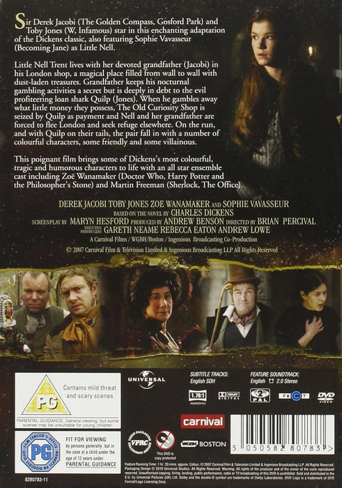 Sir Derek Jacobi ( The Golden Compass, Gosford Park ) and Toby Jones ( W, Infamous ) star in this enchanting adaptation of the Dickens classic, also featuring Sophie Vavasseur ( Becoming Jane ) as Little Nell.