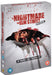 'A Nightmare on Elm Street': Nancy is having nightmares about a frightening, badly-scarred figure who wears a glove with razor-sharp "finger knives." She soon discovers that her friends are having similar dreams. When the kids begin to die, Nancy realizes that she must stay awake to survive. Uncovering the secret identity of the dream killer and his connection with the children of Elm Street, the girl plots to draw him out into the real world. 'A Nightmare on Elm Street 2: Freddy's Revenge': The Grady family, including their teenage son Jesse, moves into a house on Elm Street which has been vacant for some time. Hardly surprising, since it was the same house in which the first Nightmare on Elm Street took place. Ron starts having strange nightmares and finds that Freddy Kruger is using him to commit terrible deeds. It is up to his girlfriend to find some way of stopping Freddy. 'A Nightmare on Elm Street 3: Dream Warriors': The third Nightmare continues Freddy's story with the sole survivor of the first movie, Nancy Thompson. Nancy has just accepted a position as a research scientist at a psychiatric institution near the fated house on Elm Street and is working with a group of children who all share nightmares of Freddy. She discovers that one of the children (Kristen) has a special gift which may help them destroy Freddy forever. 'A Nightmare on Elm Street 4: The Dream Master': Following up the previous Nightmare film, dream demon Freddy Krueger is resurrected from his apparent demise, and rapidly tracks down and kills the remainder of the Elm Street kids. However, Kristen (who can draw others into her dreams) wills her special ability to her friend Alice. Alice soon realizes that Freddy is taking advantage of that unknown power to pull a new group of children into his foul domain. 'A Nightmare on Elm Street 5: The Dream Child': Alice, having survived the previous installment of the Nightmare series, finds the deadly dreams of Freddy Krueger starting once again. This time, the taunting murderer is striking through the sleeping mind of Alice's unborn child. His intention is to be "born again" into the real world. The only one who can stop Freddy is his dead mother, but can Alice free her spirit in time to save her own son? 'Freddy's Dead: The Final Nightmare': In part six of the Nightmare on Elm Street series, dream monster Freddy Krueger has finally killed all the children of his hometown, and seeks to escape its confines to hunt fresh prey. To this end, he recruits the aid of his (previously unmentioned) daughter. However, she discovers the demonic origin of her father's powers and meets Dad head-on in a final showdown (originally presented in 3-D). 'Wes Craven's New Nightmare': It's nearing the 10th Anniversary of the film 'A Nightmare on Elm Street' and one of the stars, Heather Langenkamp is being scared by a voice on a phone, sounding very similar to the film's villain, Freddy Krueger. When Heather's husband is killed in a car accident and is discovered with slash marks on him, Heather starts to wonder something. Especially when she discovers that Wes Craven is writing another 'Nightmare' film. Soon, she realizes that Freddy has now entered the real world, and the only way to defeat him is to become Nancy Thompson once again.
