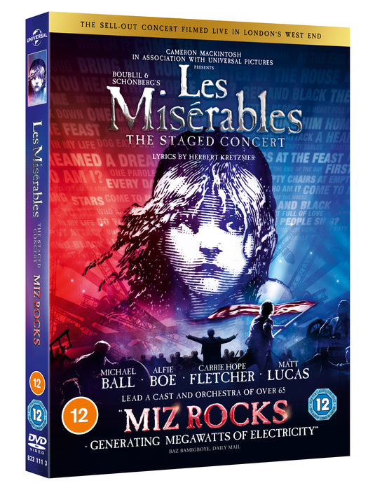 Seen by over 120 million people worldwide, LES MISÉRABLES is undisputedly one of the world's most popular musicals. Coinciding with its 35th triumphant year in London's West End, Cameron Mackintosh produced a spectacular sell-out staged concert version at the Gielgud Theatre featuring an all-star cast including Michael Ball, Alfie Boe, Carrie Hope Fletcher, Matt Lucas and John Owen Jones. Now experience the musical phenomenon at home, after it broke box office records and sold out its entire 16 week season. Featuring a cast and orchestra of over 65 and including the songs I Dreamed A Dream, Bring Him Home, One Day More and On My Own this sensational staged concert is not to be missed - an absolute must-see for any fans of musical theatre or live event cinema.