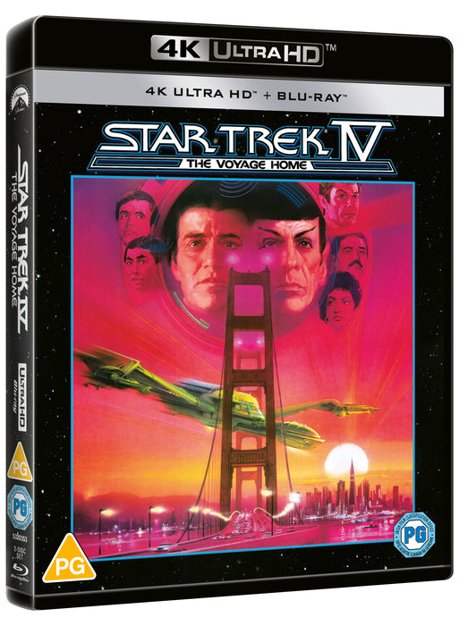 The fourth movie of the original motion picture saga comes to 4K UHD with HDR-10 and Dolby Vision, boldly remastered from the original film elements. When a mysterious alien power threatens the atmosphere of Earth in the 23rd Century, Kirk and his crew must time travel back to 1986 San Francisco to save mankind. Exploring this strange new world, they encounter punk rock, pizza and exact-change buses that are as alien as anything in the far reaches of the galaxy. STAR TREK IV: THE VOYAGE HOME is a thrilling, action-packed, and often hysterical fan favourite.
