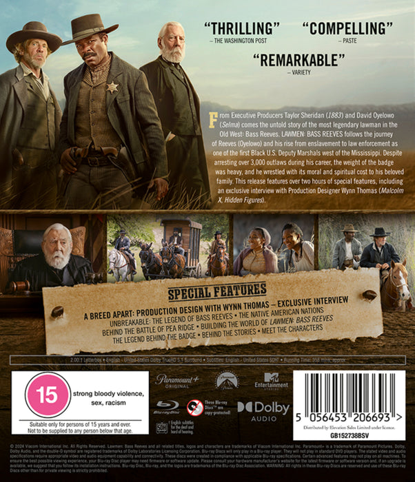 Special Features: Documentaries: 'Unbreakable: The Legend of Bass Reeves'; 'The Native American Nations'; 'Behind the Battle of Pea Ridge'; 'Building the World of 'Lawmen: Bass Reeves''; 'The Legend Behind the Badge'; 'Behind the Stories'; 'Meet the Characters', Interviews: Wynn Thomas (production designer)