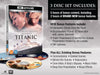 Special Features: Behind the Scenes, Bonus Footage, Bonus Tracks: 'My Heart Will Go On' by Celine Dion, Commentary: James Cameron (director); Cast and crew; Historical commentary by Don Lynch and Ken Marschall, Deleted Scenes, Documentaries: 'Titanic: Stories from the Heart'; 'Titanic: 25 Years Later'; 'Reflections on Titanic';, Image Gallery, Videomatics; Crew video: A Ship's Odyssey; Deep dive presentation narrated by James Cameron; Visual effects; Fan poster art, Trailers
