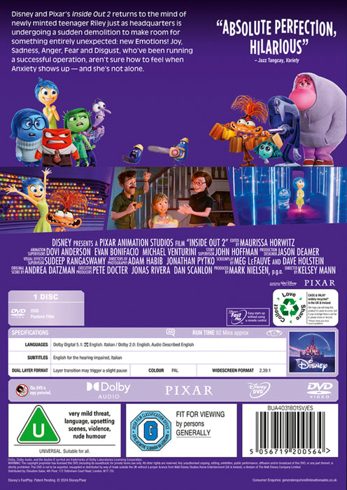 Disney and Pixar's Inside Out 2 returns to the mind of newly minted teenage Riley just as headquarters is undergoing a sudden demolition to make room for something entirely unexpected: new Emotions! Joy, Sadness, Anger, Fear and Disgust, who've been running a successful operation, aren't sure how to feel when Anxiety shows up - and she's not alone.