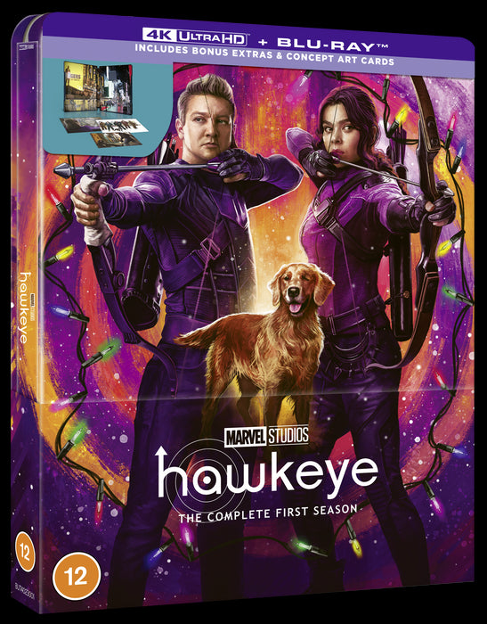 Special Features: Exclusive concept art cards, over an hour of bonus material in 4k or Blu-ray format:Assembled: The Making Of Hawkeye, A Tale Of Two Hawkeyes, Gag Reel, Deleted Scenes