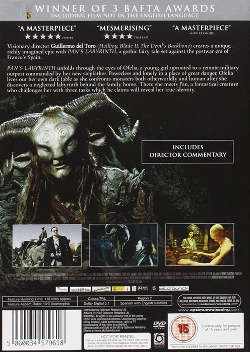 Spanish fantasy story directed by Guillermo del Torro ('Cronos') with stunning sets, shocking scenes and effects - set in the mind's eye of a lonely young girl. Ofelia (Ivana Baquero) is a young girl in a remote mountain village in Spain in 1944 after Franco's ascension to power. To escape the upheaval and hardship her family faces (her father died in the war and her mother (Ariadna Gil) has been forced to re-marry to a despotic Captain in Franco's fascist army), Ofelia creates a world in her mind. It's a beautiful place though not without its dark side but she's guided by a ghastly yet kindly fawn creature. The Captain, it soon transpires, is more interested in the son Ofelia's mother is carrying, than he is in either Ofelia or her mother. Mercedes (Maribel Verdú), the Captain's considerate servant, and Dr. Ferreiro the Captain's physician, are, it transpires, in league with the revolutionaries in the woods surrounding the army encampment. These resistance fighters are intent on liberating the rationed food and medicines they need. As the increasingly manic and paranoid captain assassinates anyone who looks at him the wrong way with alarming regularity, Ofelia's secret quests set by the fawn creature to unlock the portal to another world become more and more urgent. With its deft mixing of CGI and actual character scenes, political and social statement, Pan's Labyrinth has been referred to already as 'The Citizen Kane of fantasy films'.