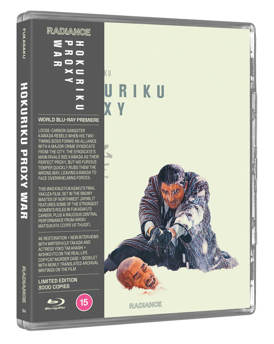 Special Features: Booklet, Bonus Footage, Interviews: Yôko Takahashi (actor); Kôji Takada (screenwriter)., Reversible sleeve featuring original and newly commissioned artwork by Time Tomorrow; Yakuza film historian Akihiko Ito on the real-life Hokuriku Proxy War murder case., Trailers