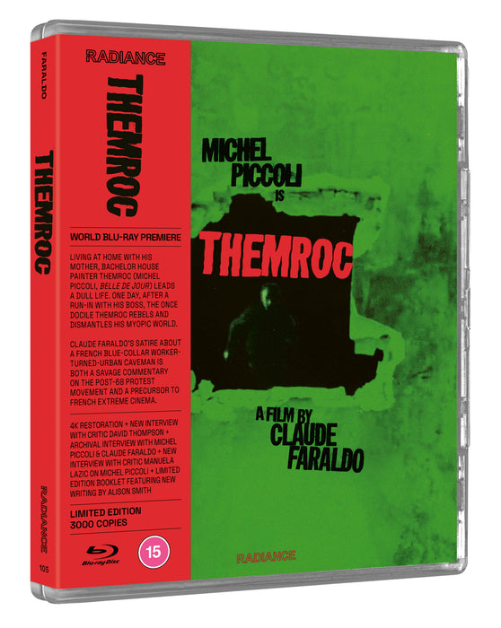 Living at home with his mother, bachelor house painter Themroc (Michel Piccoli, Belle de Jour) leads a dull life. One day, after an unearned run-in with his boss, the usually docile Themroc rebels and dismantles his myopic world. Made on a shoestring budget with no intelligible dialogue, Claude Faraldo's cult taboo-busting satire about a French blue-collar worker-turned-urban caveman anarchically eviscerates mid-century labour and gender politics.