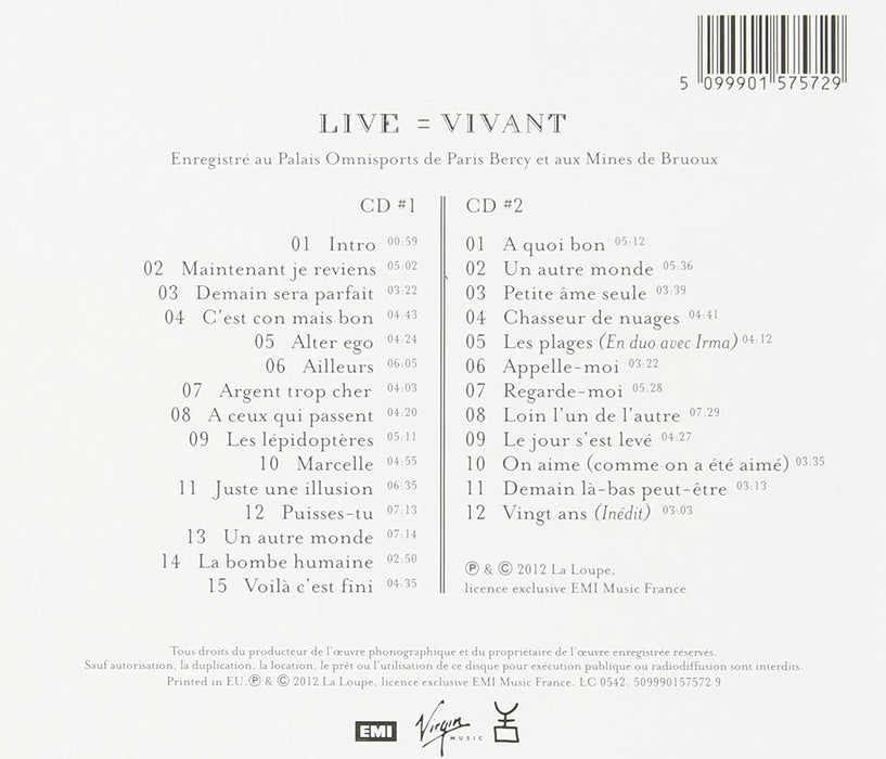 L'album Live de cette fin d'année ! Après le succès de son dernier album «ROC'ECLAIR », et ses nombreux singles désormais devenu des classiques, Jean-Louis Aubert revient sur l'ensemble de sa carrière, avec un live enregistré à Paris Bercy en novembre 2011, date mémorable de sa tournée « ROC'ECLAIR TOUR ». Toutes les chansons de Jean-Louis Aubert (solo et Téléphone) en live et un nouveau titre inédit « Vingt ans » accompagnent ce projet, appelé sobrement « LIVE = VIVANT ».