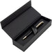 Very beautiful ballpoint pen from the Hugo Boss brand from the Sophisticated collection. The ballpoint pen is made of brass in matte black. The feminine and elegant "sophisticated" writing instruments have been reissued this year and match the new feminine accessory line "Triga" with a range of warm and neutral tones: black, taupe and nude. The gold-plated trims give them the final luxurious and feminine touch. A high-quality, blue refill from a renowned manufacturer is used for a perfect writing image.