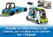 - LEGO City Passenger Aeroplane toy set features a model airplane, realistic features and functions, 4 LEGO airport vehicles and 9 minifigures