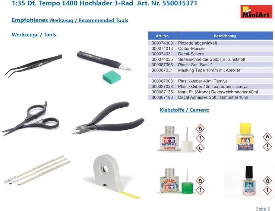 Mini Art- MiniArt 35371 1:35 DT. Tempo E400 Hochlader 3-RAD-reproducción Fiel, modelismo, plástico, Bricolaje, Ocio, Collage, Kit de Modelo, para Montar, sin Pintar (MA35371