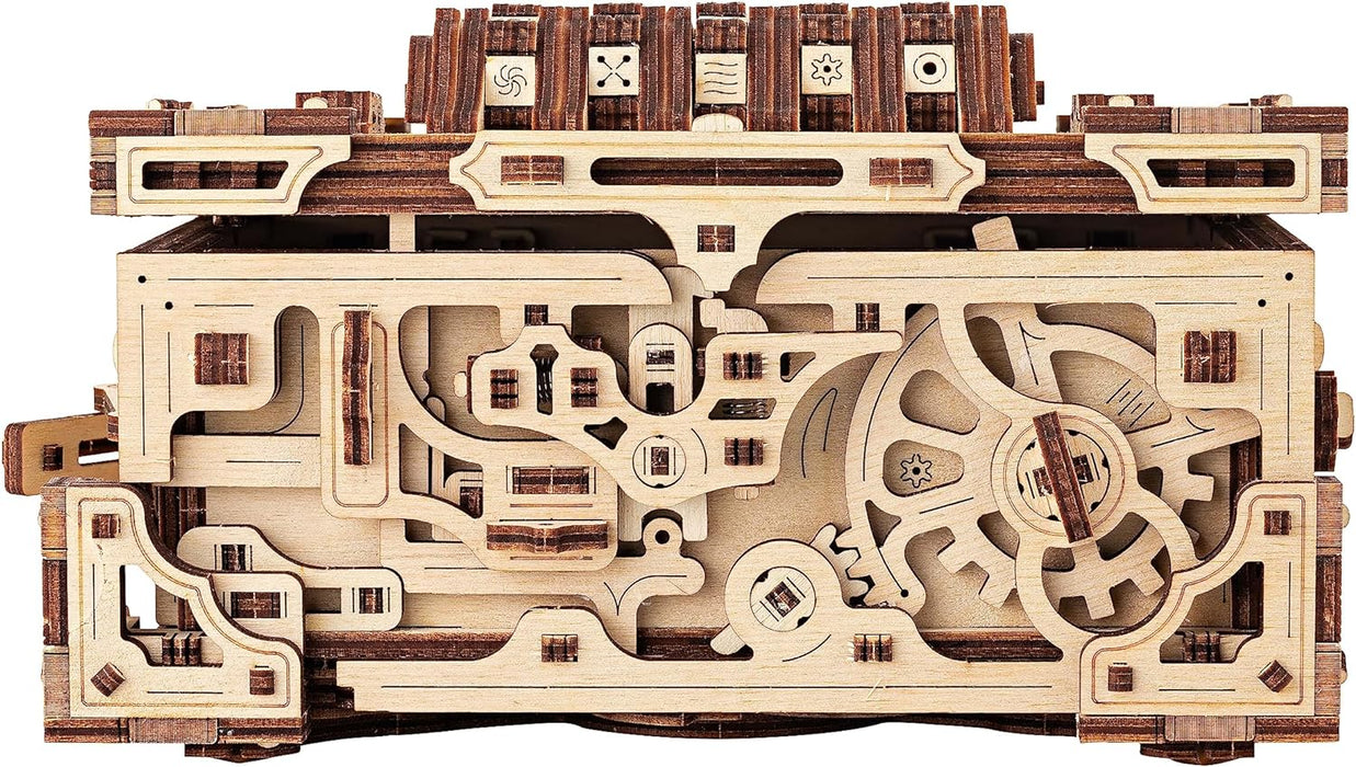 Wood Trick Enigma Chest Lock Box Wooden 3D Puzzles for Adults and Kids to Build - Engineering DIY Project Mechanical Model Kits for Adults Wooden Models