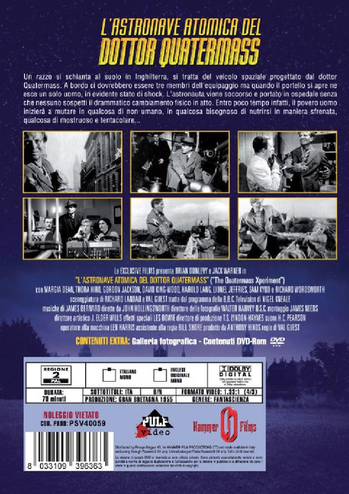 Un razzo sperimentale, dopo essersi elevato a vertiginose altezze, cade in fiamme, per ragioni imprecisate, in prossimità di un villaggio inglese. Accorre sul posto, insieme ai vigili del fuoco e alla polizia, il dottor Quatermass, inventore e costruttore del razzo, col suo aiutante, il dottor Briscoe. Quando la porta d'acciaio del razzo viene aperta, si presenta una strana figura: è Victor Carron, membro dell'equipaggio, che esce barcollando e cade a terra svenuto. Dei suoi compagni d'avventura non c'è traccia: un film, che è stato ripreso durante il percorso, rivela che nel razzo è entrato qualcosa, che ha avuto il potere di disintegrarli. Carron viene trasportato in una clinica, dove giace in stato di shock: vani sono gli sforzi dei medici per rianimare l'infelice, che si trasforma sotto i loro occhi. Secondo il dottor Quatermass, l'astronave ha raggiunto un punto dello spazio dove esistono misteriose forze che hanno aggredito i tre uomini, chiusi nel razzo, ne hanno distrutti due, insediandosi nel corpo del terzo, del quale si sono serviti come di un mezzo di trasporto per giungere sulla terra ed invaderla. Sotto l'influenza di questa misteriosa forza, che è in lui, Carron s'avvicina agli esseri circostanti che vengono da lui come assorbiti. Sua moglie lo fa uscire dalla clinica, nella speranza di poterlo guarire, ma Carron comprende di costituire un pericolo anche per la moglie e fugge. La trasformazione procede in lui con sempre maggior rapidità: non ha più sembianze umane, è divenuto una cosa che incute spavento. Tutta la polizia è mobilitata per dare la caccia al mostro, che viene scorto sui tralicci d'un ponte nell'Abbazia di Westminster. Allacciati all'impalcatura i cavi ad alta tensione, il mostro.