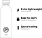 Urban Bottle is an incredibly effective alternative to food grade high-quality 18/8 stainless steel disposable plastic bottles and weighs only a few grams, making it easy to keep the bottle nearby. All 24Bottles are carbon neutral, saving about 80 grams of CO2 each filling and reducing its own CO2 footprint on the planet.