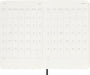 The Moleskine monthly planner with space for notes covers the entire year, from January to December. Each month occupies two facing pages of the planner, followed by two lined pages for notes interspersed between the individual months. At the end, there are an additional 51 lined pages, an extra space to organize and plan the year. The perfect combination of organization and spirit of freedom.