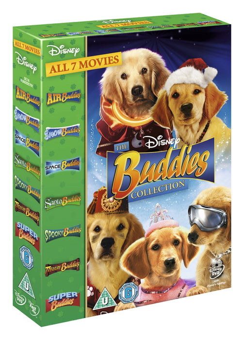 Collection of seven films following the adventures of Disney's family of talking dogs known as the Buddies. In 'Air Buddies' (2006) the parents of the family, Buddy (voice of Tom Everett Scott) and Molly (Molly Shannon), are dognapped. Young pups B-Dawg (Skyler Gisondo), Buddha (Dominic Scott Kay), Rosebud (Abigail Breslin), Mudbud (Spencer Fox) and Budderball (Josh Flitter) spring into action and launch a rescue bid. In 'Snow Buddies' (2008) Budderball, B-Dawg, Rosebud (Liliana Mumy), Buddha (Jimmy Bennett) and Mudbud (Henry Hodges), find themselves lost in Alaska and must team up with some new friends to try and find their way back home. In 'Space Buddies' (2009) the Buddies boldly go where no puppies have gone before - space. After sneaking along on a school trip to a space centre, the talking puppies find themselves launched into a space adventure. Can their new friends, Spudnick (Jason Earles) and Gravity (Amy Sedaris), help them find a way home to Earth? In 'Santa Buddies' (2009) the fivesome take a trip to the North Pole, where they visit Santa (George Wendt)'s workshop. They discover that Christmas appears to be losing its spirit and set about helping Santa Paws (Tom Bosley) restore the magic of the festive season. In 'Spooky Buddies' (2011) the puppies come across a spooky mansion on Halloween and discover that wicked duo Howloween Hound (Diedrich Bader) and Warwick the Warlock (Harland Williams) are planning to take over the world. It is up to the puppies to save the day. In 'Treasure Buddies' (2012) the five puppies go all the way to Egypt on a treasure hunt. Along with the new friends they make on their journey they contend with puzzles, traps and a crafty cat as they explore a cryptic tomb in the hopes of being the first ones to reach the prize. Finally, in 'Super Buddies' (2013), B-Dawg (Cooper Roth), Budderball (Jeremy Shinder), Buddha (Tenzing Trainor), Rosebud (G. Hannelius) and Mudbud (Ty Panitz) find magical rings from outer space that give each of them a special super power. With their new skills, it is up to the quintet to save the planet from an evil extraterrestrial being.