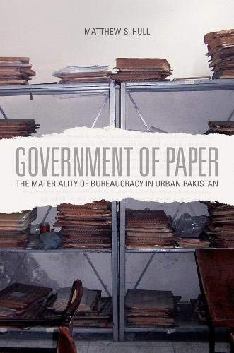 The Materiality of Bureaucracy in Urban Pakistan. In the planned city of Islamabad, order and disorder are produced through the ceaseless inscription and circulation of millions of paper artifacts among bureaucrats, politicians, and property owners. What are the implications of such paper mediation of relationships among people, things, places, and purposes? This book explores this question. In the electronic age, documents appear to have escaped their paper confinement. But we are still surrounded by flows of paper with enormous consequences. In the planned city of Islamabad, order and disorder are produced through the ceaseless inscription and circulation of millions of paper artifacts among bureaucrats, politicians, property owners, villagers, imams (prayer leaders), businessmen, and builders. What are the implications of such a thorough paper mediation of relationships among people, things, places, and purposes? "Government of Paper" explores this question in the routine yet unpredictable realm of the Pakistani urban bureaucracy, showing how the material forms of postcolonial bureaucratic documentation produce a distinctive political economy of paper that shapes how the city is constructed, regulated, and inhabited. Files, maps, petitions, and visiting cards constitute the enduring material infrastructure of more ephemeral classifications, laws, and institutional organizations. Matthew S.Hull develops a fresh approach to state governance as a material practice, explaining why writing practices designed during the colonial era to isolate the government from society have become a means of participation in it.