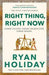 THE #1 NEW YORK TIMES BESTSELLER Harness the life-changing power of integrity in an era of dishonesty: book 3 in the New York Times-bestselling Stoic Virtues series 'Right Thing, Right Now is a message all of us need to hear' ARNOLD SCHWARZENEGGERWe know justice when we see it: moral character, admirable action, decency, honour, integrity. Our purpose flows from these values and nothing in life is worthwhile if we compromise them. For the Stoics, justice was more than an idea. It was a way of life, a personal commitment to doing the right thing, no matter how difficult the path. In this third instalment of his bestselling Stoic Virtues series, Ryan Holiday draws on historical icons and contemporary heroes to show us how to embrace the power of owning our convictions and acting accordingly. Ultimately, greatness is impossible without goodness. Your values, character and deeds will determine your success and legacy. What will you do? What won't you do? What mustyou do? Do the right thing, right now.'Pitch-perfect for navigating one of the most un-virtuous times in living memory' Telegraph